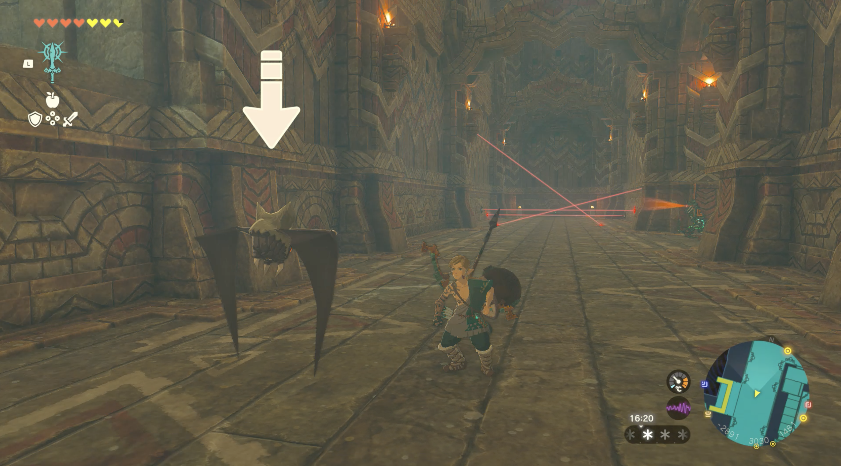 바람의 신전 B1로 진입하게 되는데, 잡몹들을 정리하고 레이저 함정들의 반대방향으로 진행한다.
